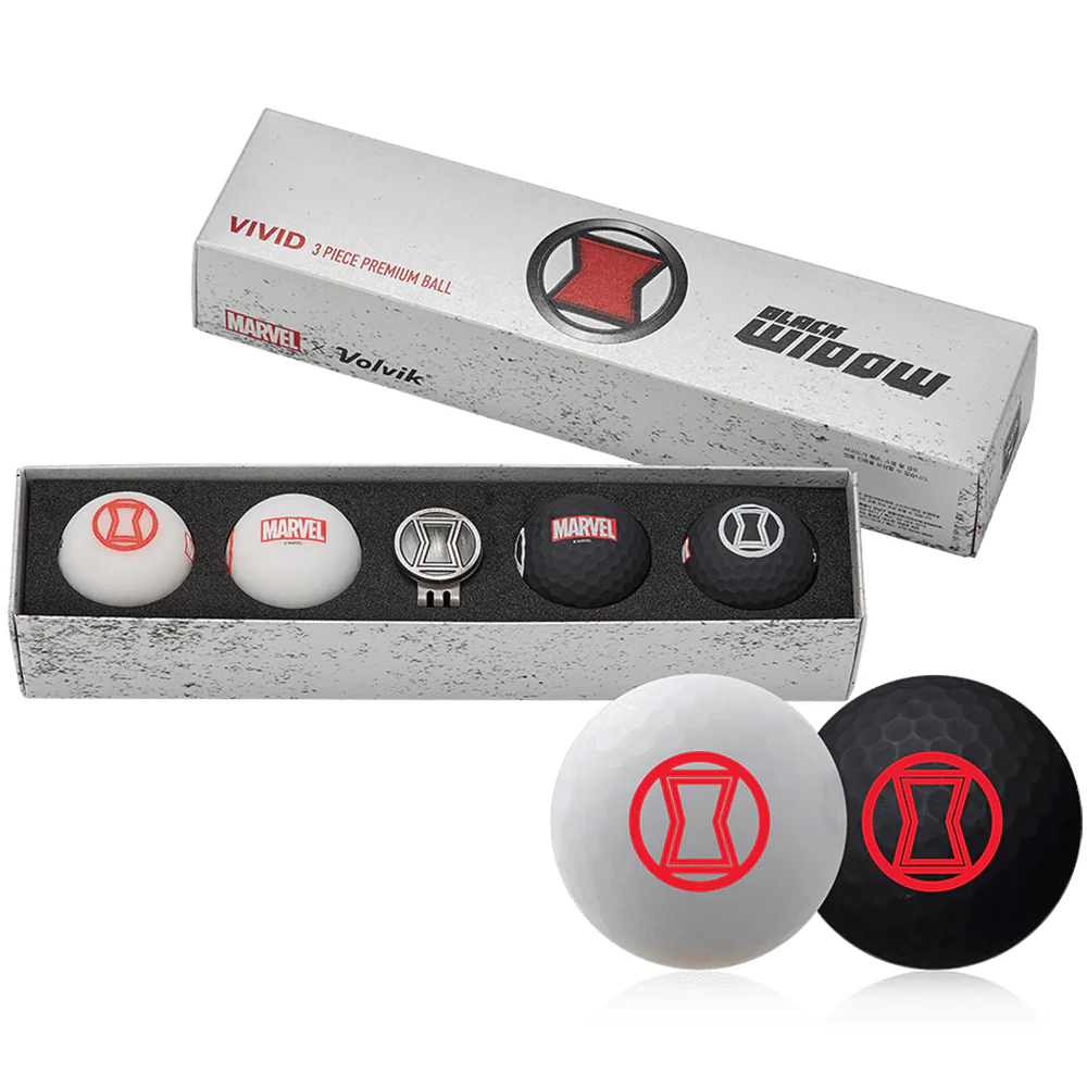 These matte-finish, four-piece Vivid high-performance golf balls feature Volvikās new oversized energy core. Each four-ball set includes a magnetic hat-clip superhero ball marker.
